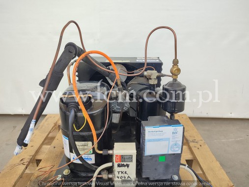 Agregat chłodniczy L'unite Typ: TAJ 2446Z Wydajność chłodnicza: 2.1 kW przy -10°C/40°C, 1kW kW przy -25°C/40°C Czynnik chłodniczy: R404A Stan magazynowy: 1 sztuka Numer magazynowy: AG 111 Stan: Używany