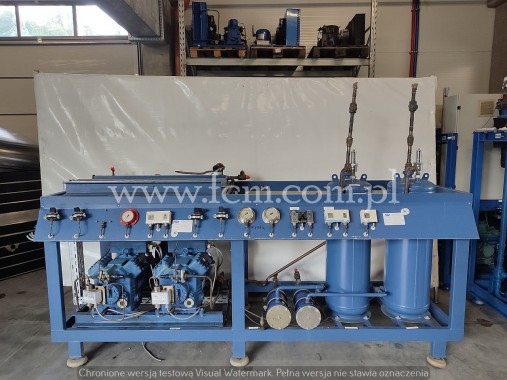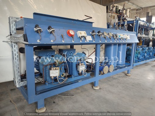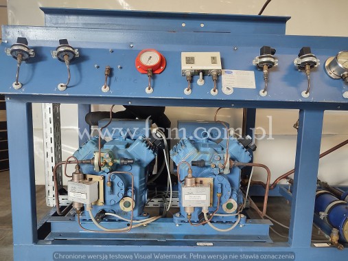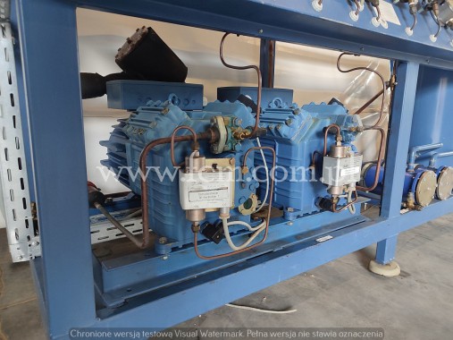 Zespół sprężarkowy BOCK - Typ: HGX4/650-4 (x2) - Przepływ: 56.6 m3/h (x2) - Wydajność chłodnicza zestawu: 76 kW przy -5°C/40°C, 62 kW przy -10°C/40°C, 32 kW przy -25°C/40°C - Czynnik chłodniczy: R404A - Wymiary urządzenia: 2650 x 950 x 1800 mm - Stan magazynowy: 1 zespół