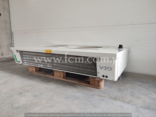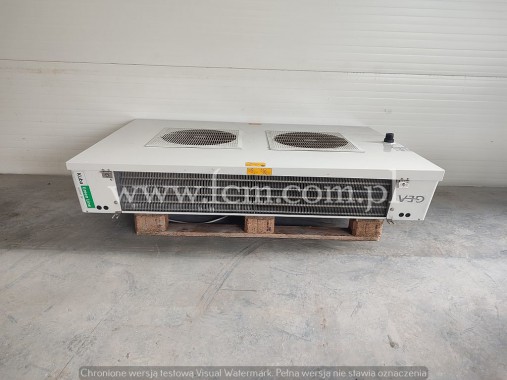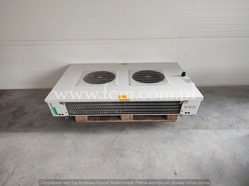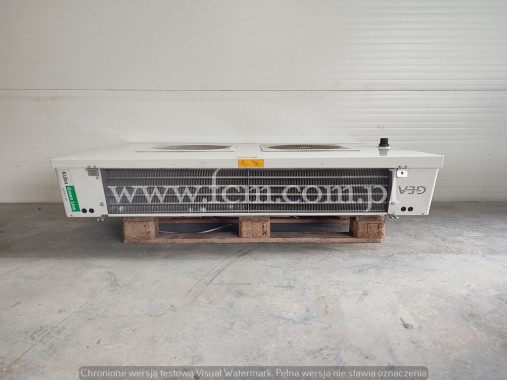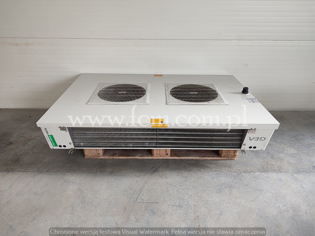 Chłodnica podsufitowa dwustronna GEA KUBA - Typ: DPA 032C - Wydajność chłodnicza: 5.3 kW przy DT8 - Powierzchnia wymiany: 32 m2 - Przepływ powietrza: 2128 m3/h - Lamel: 4.5 mm - Ilość wentylatorów: 2 x 350 mm - Wymiary urządzenia: 1600 x 1000 x 300 mm - Czynnik chłodniczy: Freon - Pojemność: 6.8 L - Waga: 70 kg - Stan magazynowy: 1 sztuka