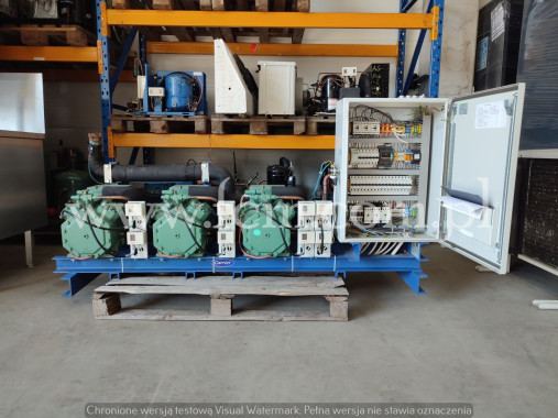 Używany agregat chłodniczy na dwóch sprężarkach hermetycznych średniotemperaturowych Copeland Scroll.
