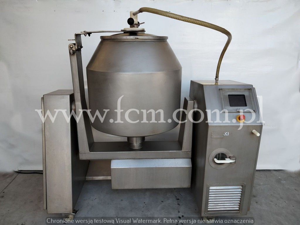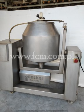 Używana masownica GUNTHER - Typ: GPA 300K - Pojemność: 300L - Max. ładowność: 200kg - Moc: 2.5kW - Wymiary urządzenia: 1950 x 1000 x 2100 mm - Wykonany ze stali nierdzewnej - Z chłodzeniem - Pompa próżniowa (próżnia w pracy ciągłej lub przerywanej) - Dotykowy panel kontrolny (możliwość ustawienia 100 programów) - Bezstopniowa regulacja prędkości bębna - Dowolny wybór kąta nachylenia - Możliwość wyboru kierunku obrotów / asymetryczne przegrody - Okres pracy z czasami obrotowymi i przerwami - Stan magazynowy: 2 sztuki - Stan: Bardzo dobry, gotowy do pracy