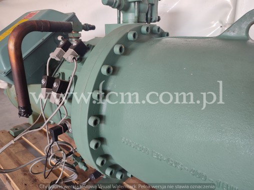 Sprężarka Bitzer Typ: CSH 9571-180Y-40D Przepływ: 700 m3/h Wydajność chłodnicza: 389 kW przy 0°C/40°C, 316 kW przy -5°C/40°C, 253 kW przy -10°C/40°C Czynnik chłodniczy: R134A Stan magazynowy: 2 sztuki Waga: 1280 kg