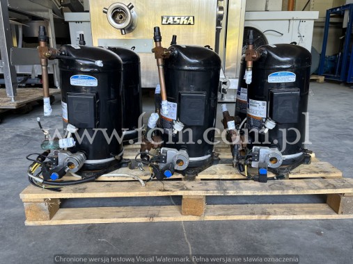 Sprężarka Copeland Scroll - Typ: ZF48K4E-TWD-551 - Przepływ: 42.3 m3/h - Wydajność chłodnicza dla R404A/R507: 27 kW przy -10°C/40°C, 15.5 kW przy -25°C/40°C, 12.6 kW przy -30°C/40°C - Waga: 120 kg - Stan magazynowy: 1 sztuka