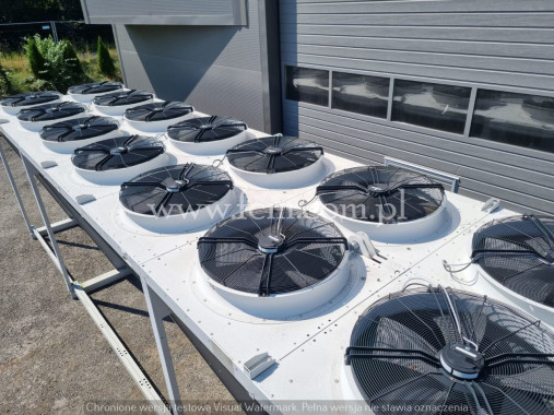Drycooler Guntner Typ: GFV080.3A/3-L Wydajność chłodnicza: 156 kW Ilość wentylatorów: 3 x 800 mm Wymiary urządzenia: 6500 x 850 x 1130 mm Średnia wejściowa/wyjściowa: 48/48 mm Pojemność: 100 L Waga: 700 kg Stan magazynowy: 1 sztuka
