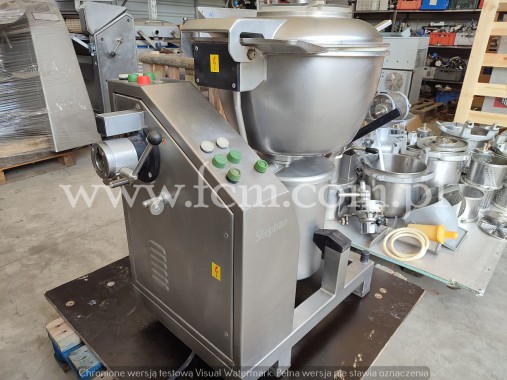Kuter Stephan Kuter jest maszyną, której głównym zadaniem jest precyzyjne rozdrobnienie mięsa (siekanie, mielenie), ale będzie odpowiedni również przy mieszaniu produktów spożywczych. Kuter Stephan UM44 S sprawdzi się w średnich oraz dużych zakładach mięsnych, masarniach, ubojniach, w sektorze zajmującym się produkcją słodyczy, pokarmu dla zwierząt tzw. pet food, żywności dla dzieci tzw. baby food, jak również w produkcji żywności wegetariańskiej i wegańskiej. - Typ: UM44 5 - 2 biegi noży: (1450/2900) - Pojemność: 45 L - Wymiary urządzenia: 950 x 550 x 1200 mm - Napięcie zasilania: 380 V 50Hz - Moc całkowita: 5,5 kW - Materiał: Stal nierdzewna - Stan magazynowy: 1 sztuka - Stan: Używany