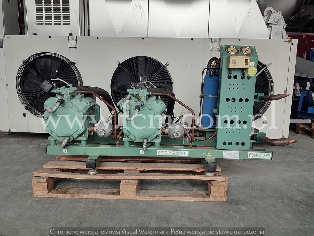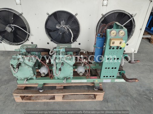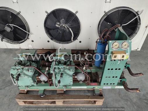 Używany zespół sprężarkowy Bitzer w bardzo dobrym stanie technicznym. Posiadamy skraplacz oraz parowniki do kompletu.