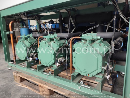 Zespół sprężarek Bitzer - Typ: 6J-22.2Y-40P (x3) - Przepływ: 95,3 m3/h (x3) - Wydajność chłodnicza: 157 kW przy -10°C/40°C, 90kW przy -25°C/40°C, 33 kW przy -40°C/40°C - Czynnik chłodniczy: R404A - Wymiary urządzenia: 2100 x 800 x 1850 mm - Stan magazynowy: 1 sztuka
