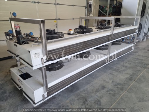 Stan magazynowy: 2 sztuki Wydajność chłodnicza: 38kW przy DT8 Lamel [mm]: 7 Grzałki elektryczne: TAK Ilość wentylatorów: 4 x 400 mm Wymiary urządzenia [mm]: 4500 x 1150 x 450 Czynnik chłodniczy: Freon Pojemność [L]: 26
