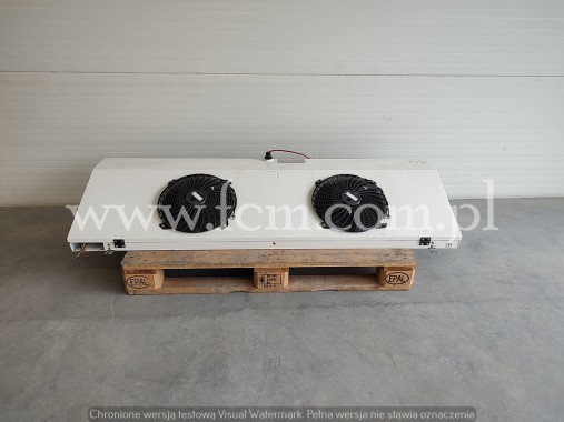 Chłodnica Guntner - Typ: CXGDF 030.1B/27-E - Wydajność chłodnicza: 2.8 kW przy DT8 - Lamel: 7 mm - Grzałki elektryczne - Ilość wentylatorów: 2 x 300 mm - Wymiary urządzenia: 1650 x 500 x 250 mm - Czynnik chłodniczy: Freon - Pojemność: 4 L - Rok produkcji: 2013 - Stan magazynowy: 1 sztuka