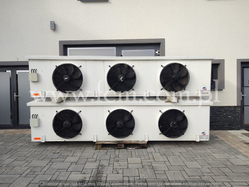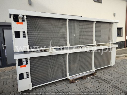 Chłodnica Guntner - Typ: GDF 030.1B/27-E - Wydajność chłodnicza: 2.83 kW przy DT8 - Lamel: 7 mm - Grzałki elektryczne - Ilość wentylatorów: 2 x 300 mm - 900/1250 obr/min - Wymiary urządzenia: 1640 x 500 x 250 mm - Czynnik chłodniczy: Freon - Pojemność: 4.1 L - Rok produkcji: 2012 - Stan magazynowy: 1 sztuka
