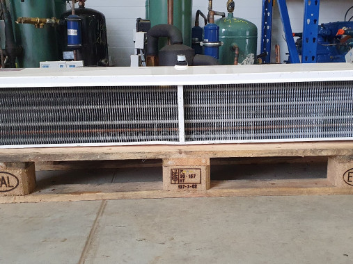 Używana chłodnica amoniakowa ze stali nierdzewnej firmy Guntner w bardzo dobrym stanie technicznym. Urządzenie jest wyposażone w miejsce na grzałki elektryczne. Posiadamy agregat chłodniczy do kompletu.