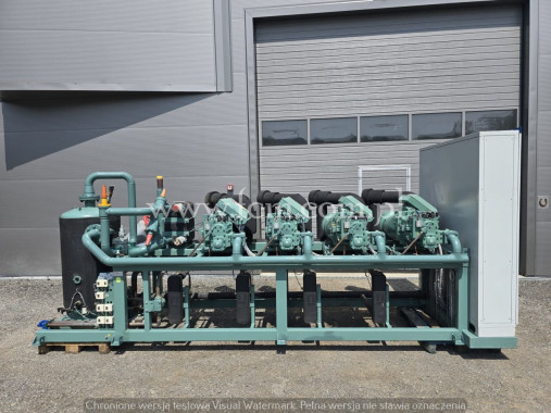 We can offer Cold water installations consisting of : - 3x compressors Bitzer HSKC7451-70Y-40P, Each volume:192m3/h, each capacity : 110 kW at -10/40 for R407C - 1x compressors Bitzer CSH7563-80Y-40P, Volume:227m3/h, capacity : 112 kW at -10/40 for R407C - Compressor mounting frame with 4pcs original Plate exchanger - Original Control Box panel The system worked on R407C,is dismantled and ready for reinstallation.