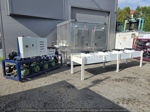 Chłodnica Helpman - Typ: LEX-16 E - Wydajność chłodnicza: 8 kW przy DT8 - Lamel: 6 mm - Grzałki elektryczne - Ilość wentylatorów: 1 x 450 mm - Obr/min: 1410 - Wymiary urządzenia: 1100 x 650 x 700 mm - Czynnik chłodniczy: Freon - Stan magazynowy: 1 sztuka
