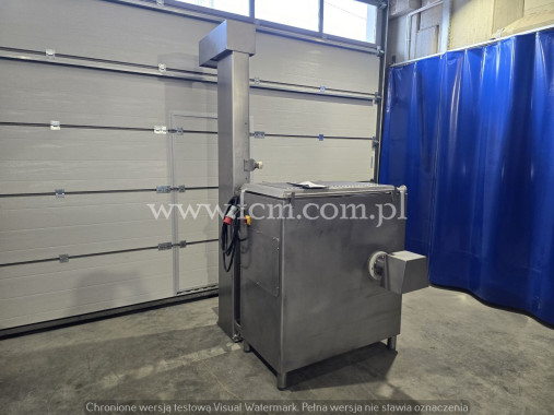 Nadziewarka Próżniowa Handtmann - Typ: VF 200 - Pojemność leja: 90\240 ( litrów ) - Moc całkowita: 7kW - Wydajność nadziewania: Max. 5000 kg/h - Porcjowanie: 5 - 100.000 gram - Załadunek ramienny do wózków 200l - Zasilanie: Elektryczne, 400V 50Hz 3N - Stal nierdzewna, kwasoodporna