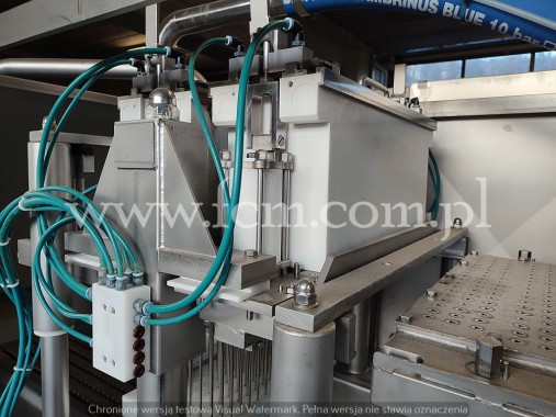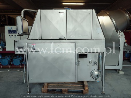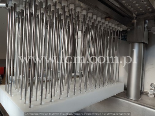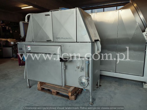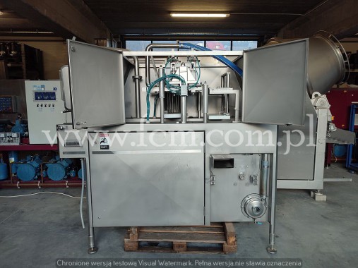Używana nastrzykiwarka firmy Inject-Star w dobrym stanie technicznym. Urządzenie posiada regulowaną prędkość pracy, ciśnienia oraz ilości nastrzykiwanej solanki. Podajnik taśmowy łatwy do czyszczenia, w całości wyciągalny. Sito filtra i zbiornik ciśnieniowy otwierany od zewnętrznej strony przedniej - bezproblemowe czyszczenie Teleskopowe uszczelnienia labiryntowe - zamknięta osłona maszyny - ochrona przed zabrudzeniem przestrzeni wewnętrznej maszyny